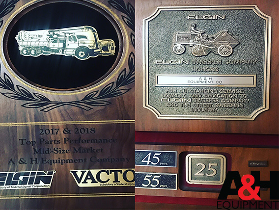 Today A&H received the 2017 & 2018 Top Performance Mid-Size Market Award, and our 55 Year Badge for loyalty to Elgin Sweeper Company and the Street Sweeping Industry. We are truly honored to be recognized for the hard work and dedication as we continue to strive for excellence in putting our customers first. Vactor#elginsweeper #ahequipment #ahbodies #pastreetsweeperrentals#streetsweeperrental Truvac
